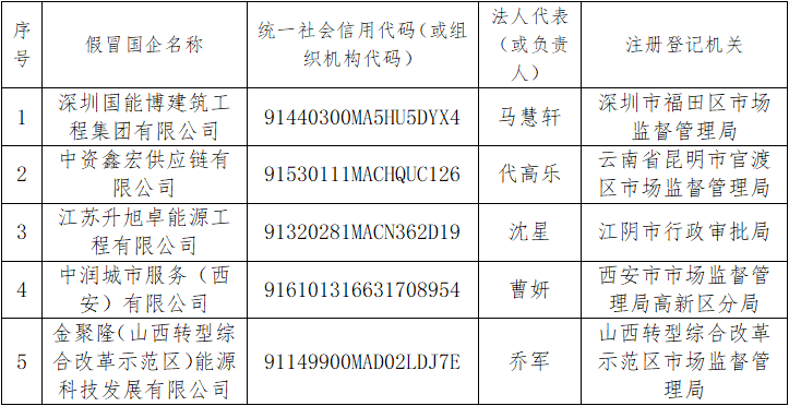 关于假冒国企信息公告